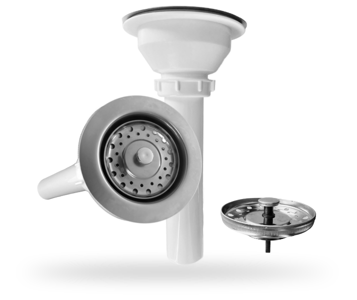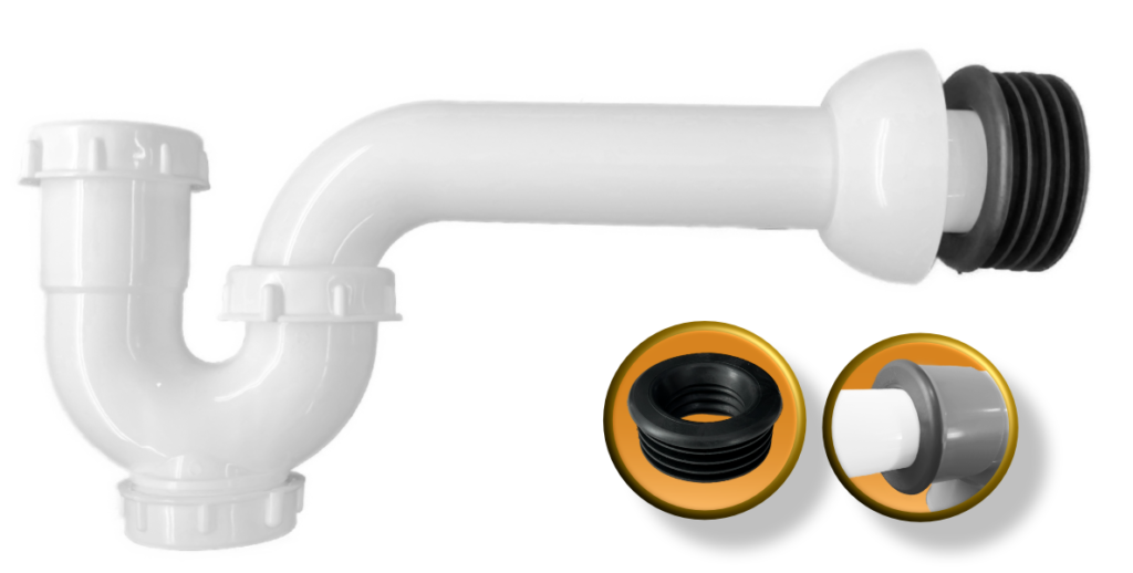 Trampa tipo “P” con registro y con adaptadores compatibles con lavaderos de cocina y lavabos de baño